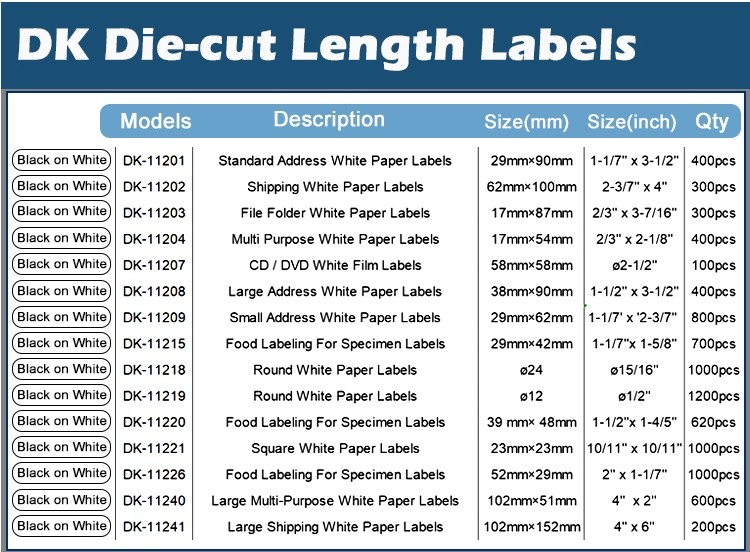 DK11241 Die-Cut Length Labels 102mmx152mm/200pcs